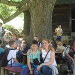 Након ове посете, око 12ч стижемо у Тршић, родно место Вука Стефановића Караџића. Посетили смо Вукову спомен кућу и по речима кустоса и историчара овог етнографског парка, на предлог нашег водича Недељка Стаменића, направили једну од ретких, а можда и јединствену групну фотографију испред куће творца азбуке.